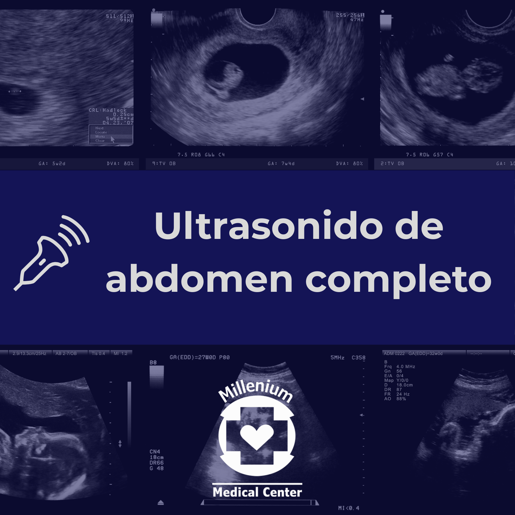 Estudio integral que evalúa todos los órganos abdominales (hígado, vesícula biliar, páncreas, bazo, riñones, vejiga). Permite detectar cálculos, quistes, inflamaciones, tumores o alteraciones estructurales, brindando una visión completa del estado abdominal.